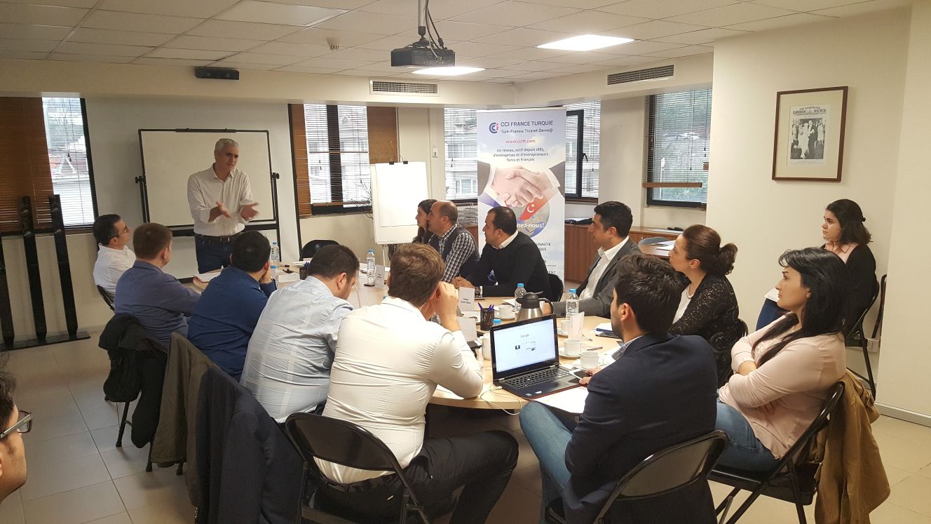 Organisée en partenariat en VIAPro, cette formation intitulée « Éveillez le commercial qui sommeille en vous » s’est déroulée dans les locaux de la Chambre le 22 mars de 16h à 19h. Animée avec brio par Cagatay Saybaşılı, formateur en vente, coaching et communication, elle a permis à 12 commerciaux de PME françaises implantées en Turquie de prendre conscience des barrières mentales qui limitent leur potentiel. Ils ont notamment abordé des questions telles que Comment gérer nos émotions lorsque nous rencontrons une objection » et « Comment utiliser l'écoute active et poser les bonnes questions pour dominer le processus de vente ». Un bel exercice qui en appellera d’autres ….