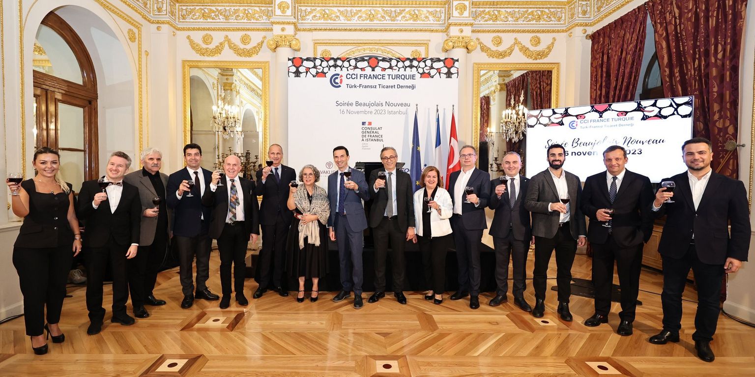 La 22ème édition de la soirée Beaujolais Nouveau, organisée par la Chambre de commerce française en Turquie, s’est tenue le jeudi 16 novembre au Palais de France. La Consule générale adjointe Madame Margarida Bobenrieth, le Président de la CCI France Turquie Monsieur Franck Mereyde ainsi que plus de 250 invités. Nous sommes heureux que cette soirée, au cours de laquelle nous avons célébré la fraternité franco-turque, ait donné à nos invités l'occasion de nouer de nouvelles relations d'amitié et d'affaires.