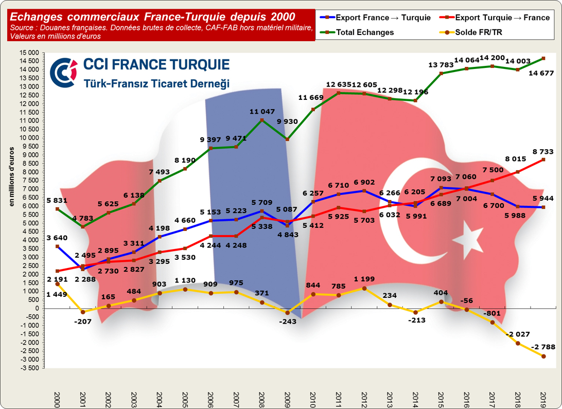 Les échanges commerciaux franco-turcs en 2019 sont en hausse de 4,6% par rapport à 2018 en raison de la bonne tenue des exportations turques