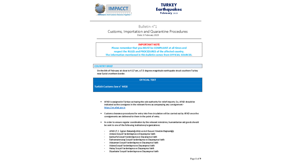Veuillez consulter le lien ci-dessous pour les règles d’expédition mis à jour des aides humanitaires depuis des pays étrangers vers la Turquie.