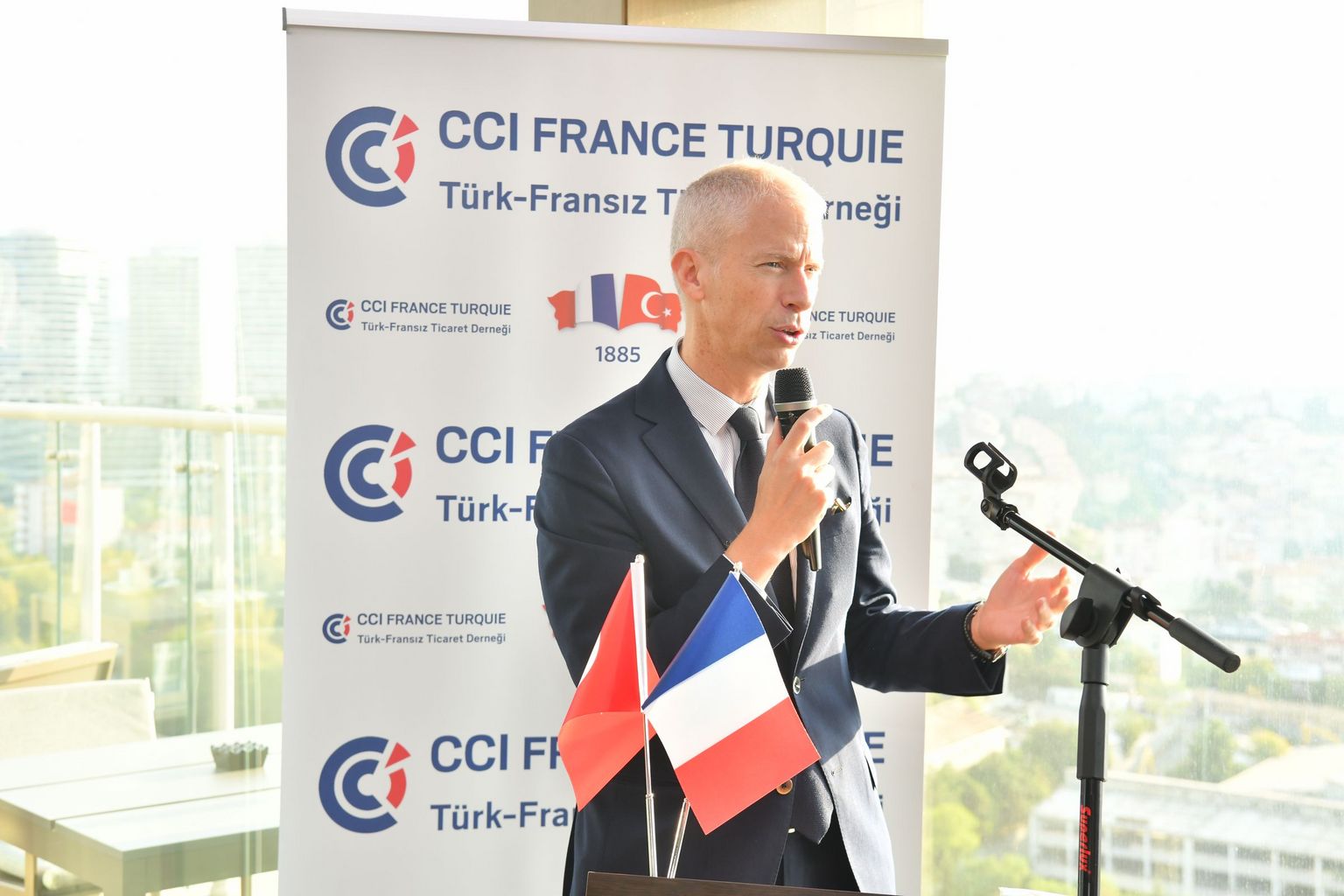 La Chambre de Commerce Française en Turquie a eu l’honneur d’accueillir M. Franck Riester, Ministre délégué chargé du Commerce extérieur et de l'Attractivité, ce mardi matin à Istanbul pour partager un petit-déjeuner d’affaires avec les entreprises francophones. Cette rencontre conviviale aura servi à rappeler les bonnes relations économiques qu'entretiennent la France et la Turquie ainsi que le soutien de la Chambre dans ces relations pour objectif d'augmenter les échanges commerciaux et d’atteindre 20 milliards d’euros.