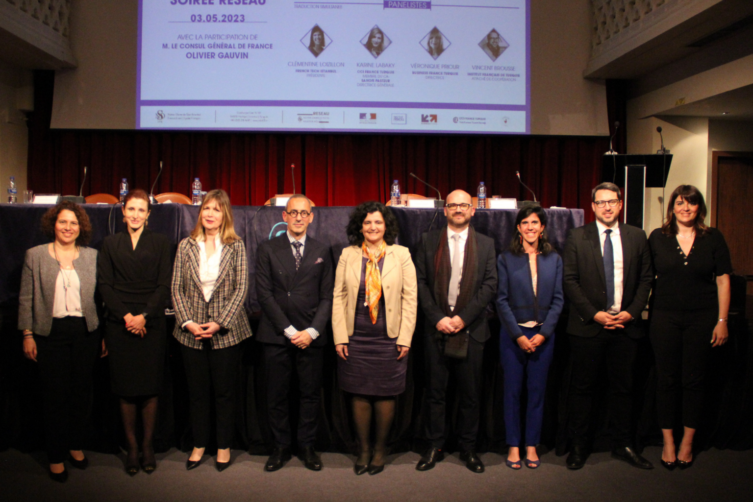 Lors du panel sur les relations économiques bilatérales, Karine LABAKY, Membre du Conseil d'Administration de la CCI France-Turquie et Directrice Générale de Sanofi Pasteur, Véronique PRIOUR, Directrice de Business France Turquie, Clémentine LOIZILLON, Présidente de FrenchTech Istanbul, et Vincent BROUSSE, Attaché de Coopération de l'Institut Français de Turquie, ont apporté de précieuses contributions et souligné l'importance du grand réseau francophone en Turquie.
