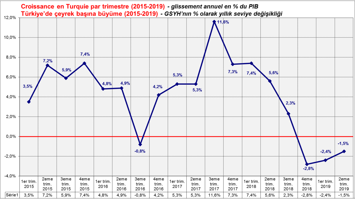 Turquie : le PIB a reculé de 1,5% en glissement annuel au 2ème trimestre 2019