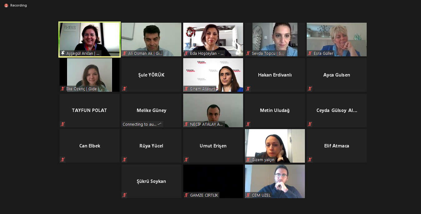 Des informations détaillées ont été partagées au sujet de la nouvelle «réglementation du télétravail» dans le cadre de la réglementation des conditions de travail notamment sur les nouvelles politiques et stratégies des ressources humaines, la transition vers l'infrastructure numérique, la mesure de la performance des salariés et la détermination des salaires et des avantages sociaux par le membre de notre Conseil d'Administration et Associé de Gide Turquie, Maitre Ali Osman AK, l'avocate İlke Özenç et la responsable du département des Ressources Humaines d'AXA Assurances, Esra Güller.