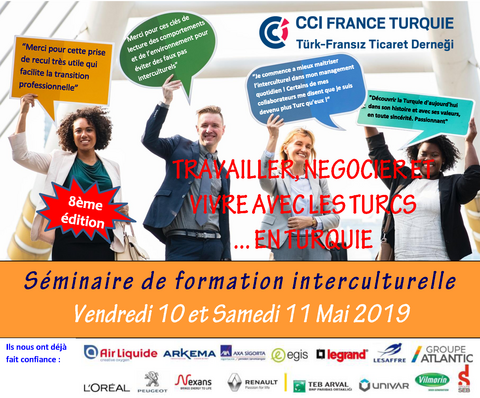 Depuis 2015, la Chambre de Commerce Française en Turquie propose deux fois par an, un séminaire de formation interculturelle “ TRAVAILLER, NEGOCIER ET VIVRE AVEC LES TURCS ET EN TURQUIE ” sur deux jours, en langue française, destinée aux dirigeants et cadres français récemment expatriés en Turquie ou travaillant avec ce pays depuis la France et qui souhaitent :
