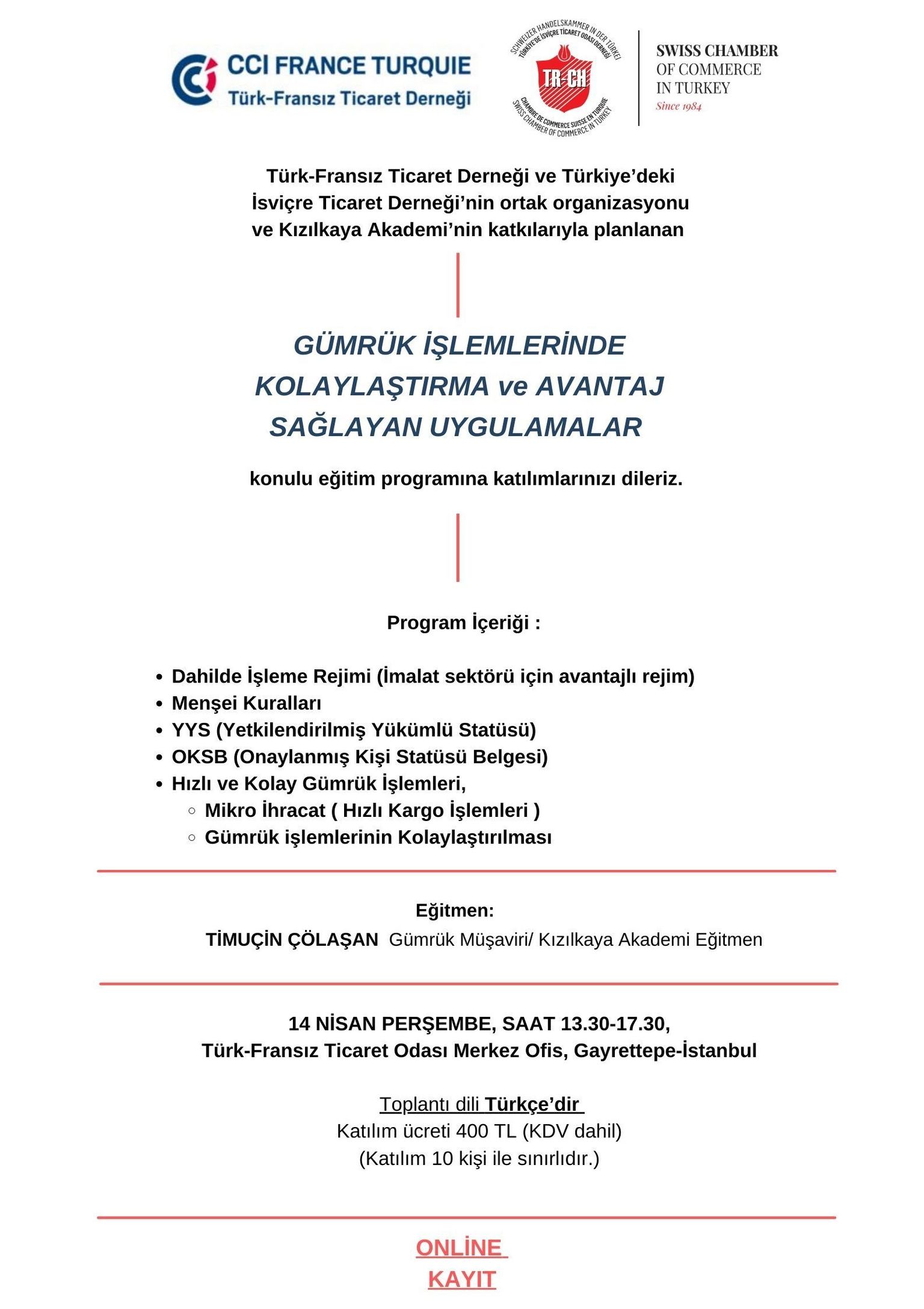 The training program will be in Turkish
