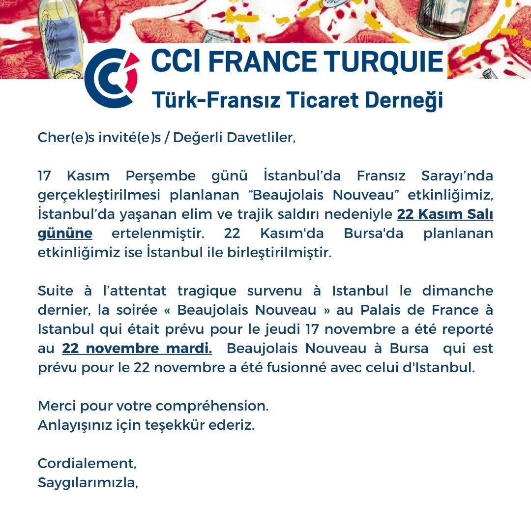 İstanbul'da gerçekleşecek olan Beaujolais Nouveau Gecesi 22 Kasım 2022'ye ertelendi.