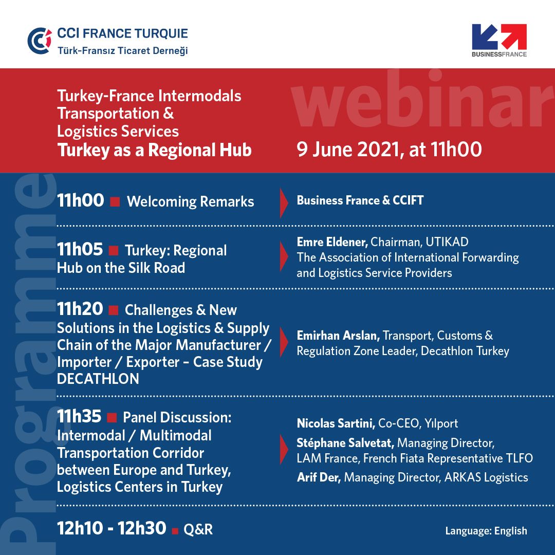 WEBINAR - Turkey-France Intermodal Transportation & Logistics Services. Turkey as a Regional Hub 7 Haziran 2021 Webinaire réservé à nos membres Üyelerimize özel webinar